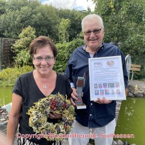 Karlheinz Braun aus Dieburg erhielt zu seinem 80sten Geburtstag für sein außerordentliches persönliches Engagement um die Pflege und Vermittlung kulturellen Erbes Mundart, verbunden mit der ehrenamtlichen Unterstützung von schwerkranken Kindern, die Ehren-Auszeichnung "Kaiserturm – ein Herz für die Mundart". Fritz Ehmke gratulierte im Namen der Mundartfreunde Südhessen und übergab eine Urkunde und ein künstlerisch gestaltetes Modell vom Kaiserturm, dem Wahrzeichen vom südhessischen Odenwald auf der Neunkirchner Höhe. Ehefrau Margrit erhielt als Dankeschön für die Unterstützung ihres Ehemanns ein buntes Blumenkränzchen überreicht.